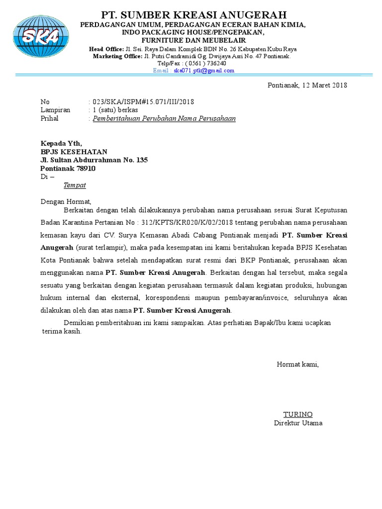 Contoh Surat Perubahan Nama Perusahaan Swasta Pdf